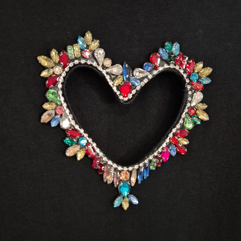 Heart Tee Shirt with Crystal Jewels and Cut Out detailing