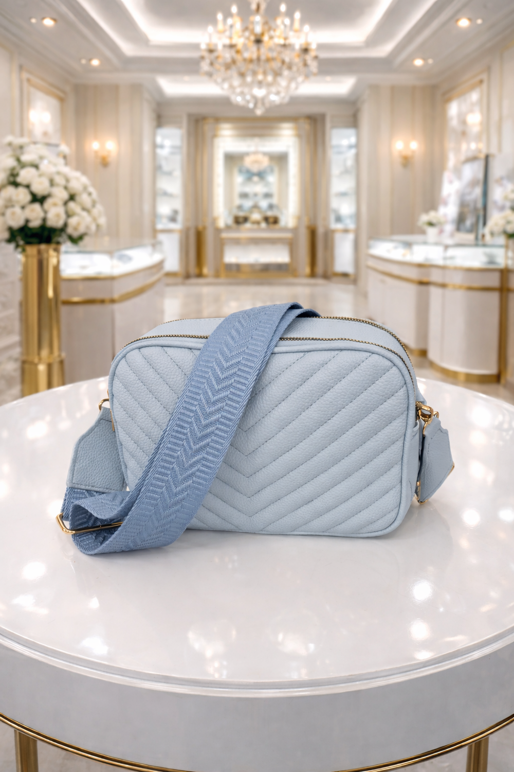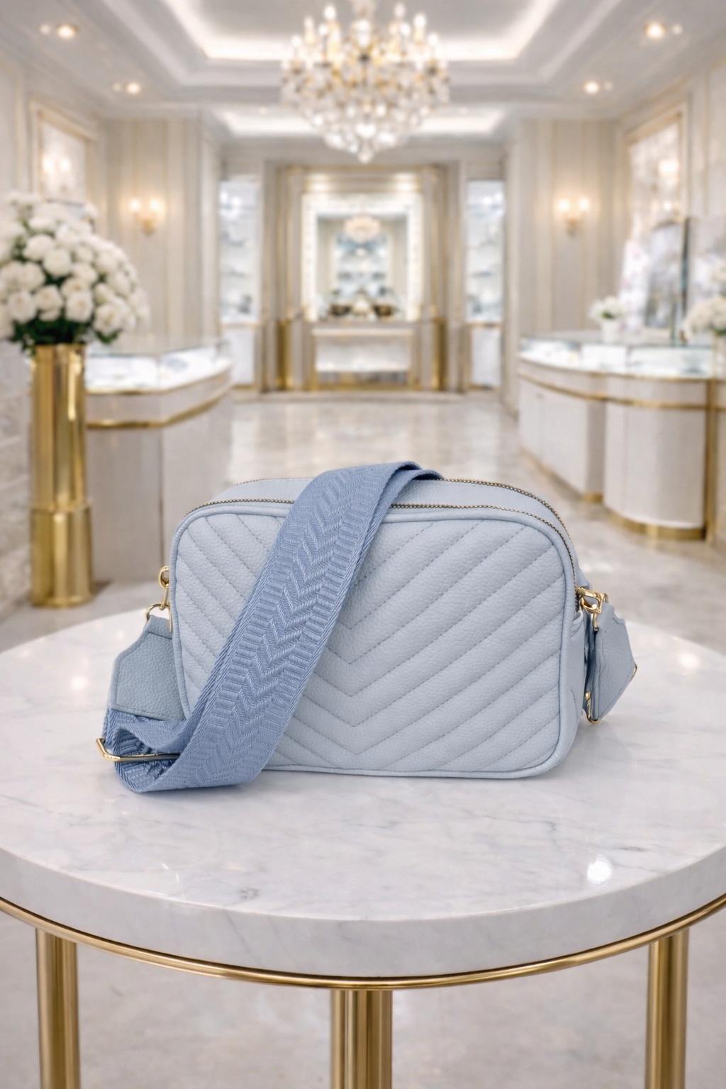 Quilted Crossbody/Shoulder Bag - Blue (Gold Tone)