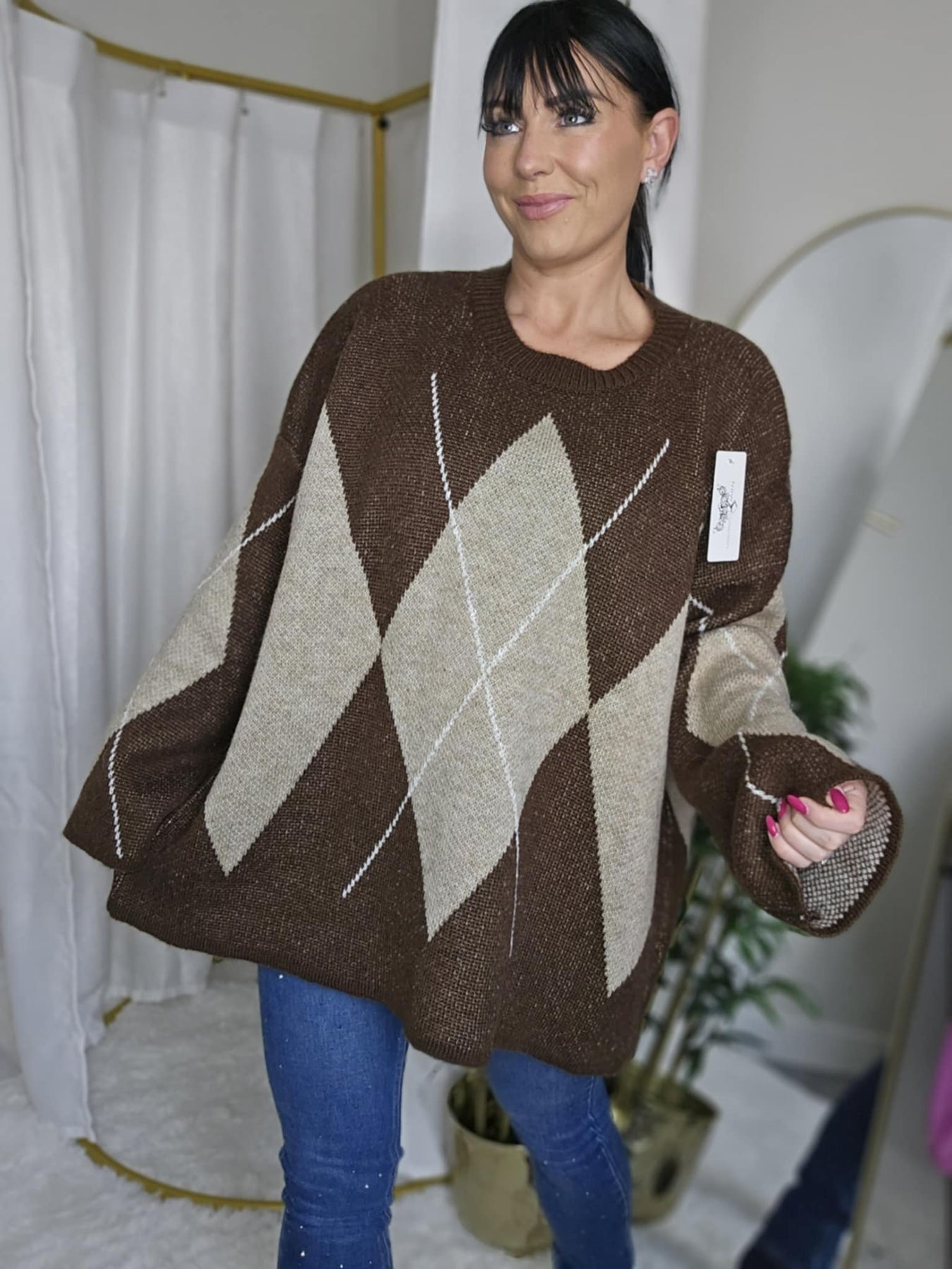 Argyll Oversized Jumper - Chocolate - (One Size/Curvy, fits from Size 14 up to Size 18/20)