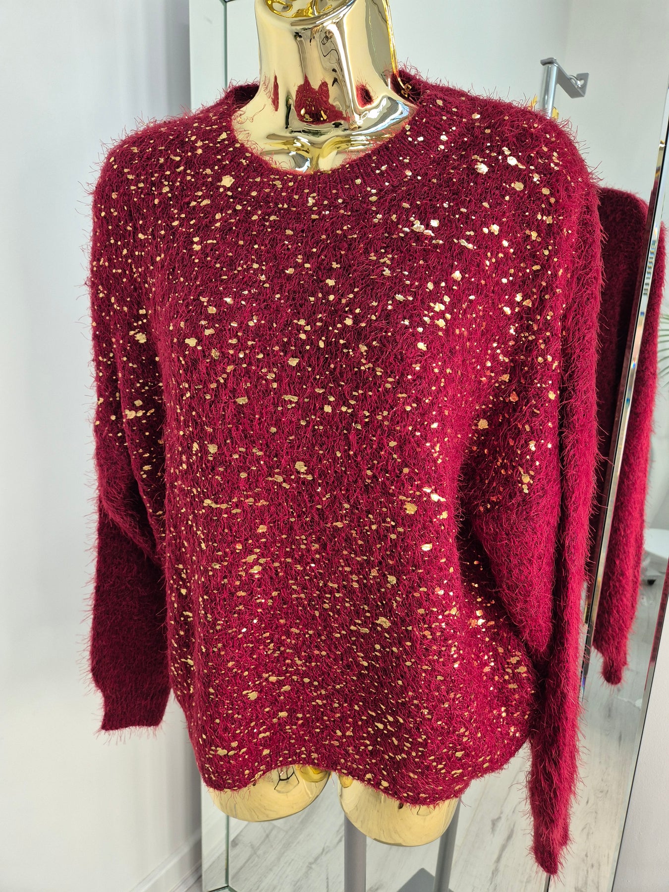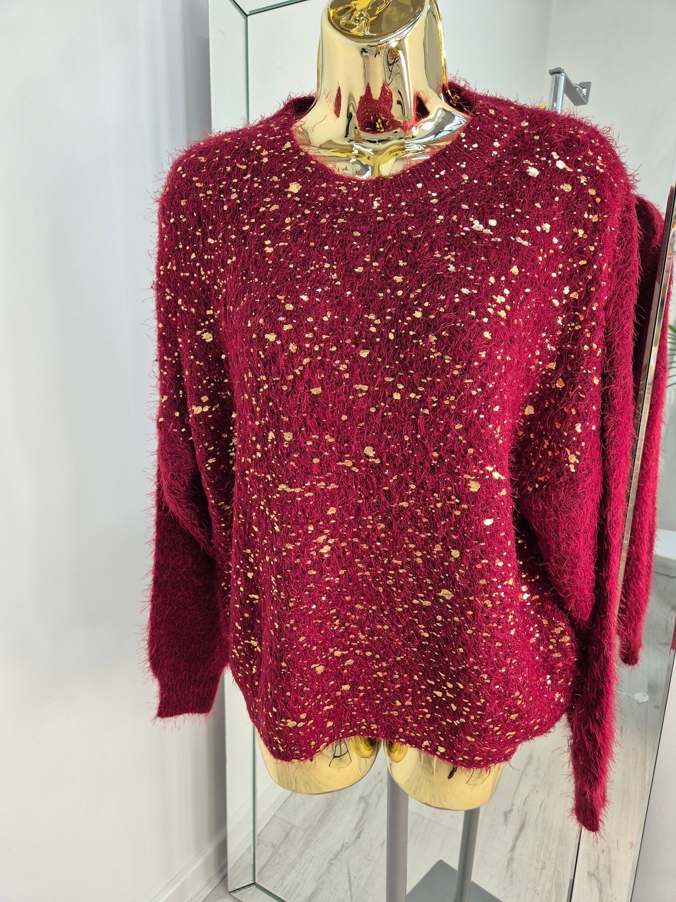 Gold Foil Sparkle Jumper - Red (One Size, fits Size 10 up to Size 16)