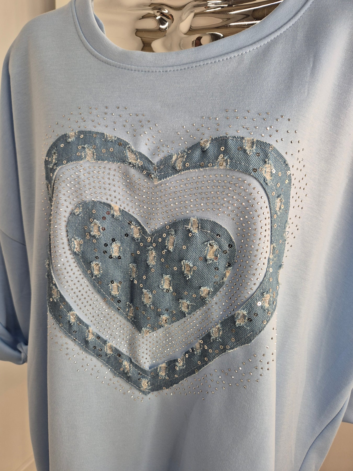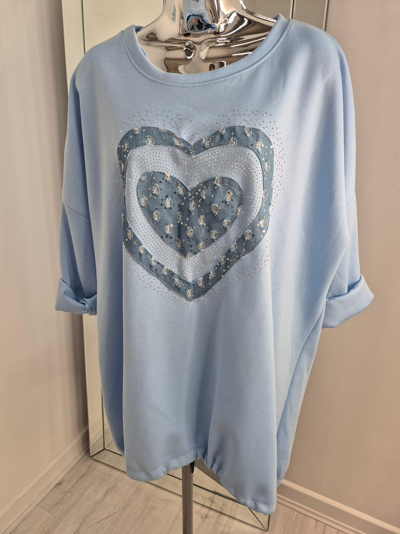 Hannah Hearts Slouchy Top - Blue/Blue (Oversized fitting from Size 14 up to Size 18/20)