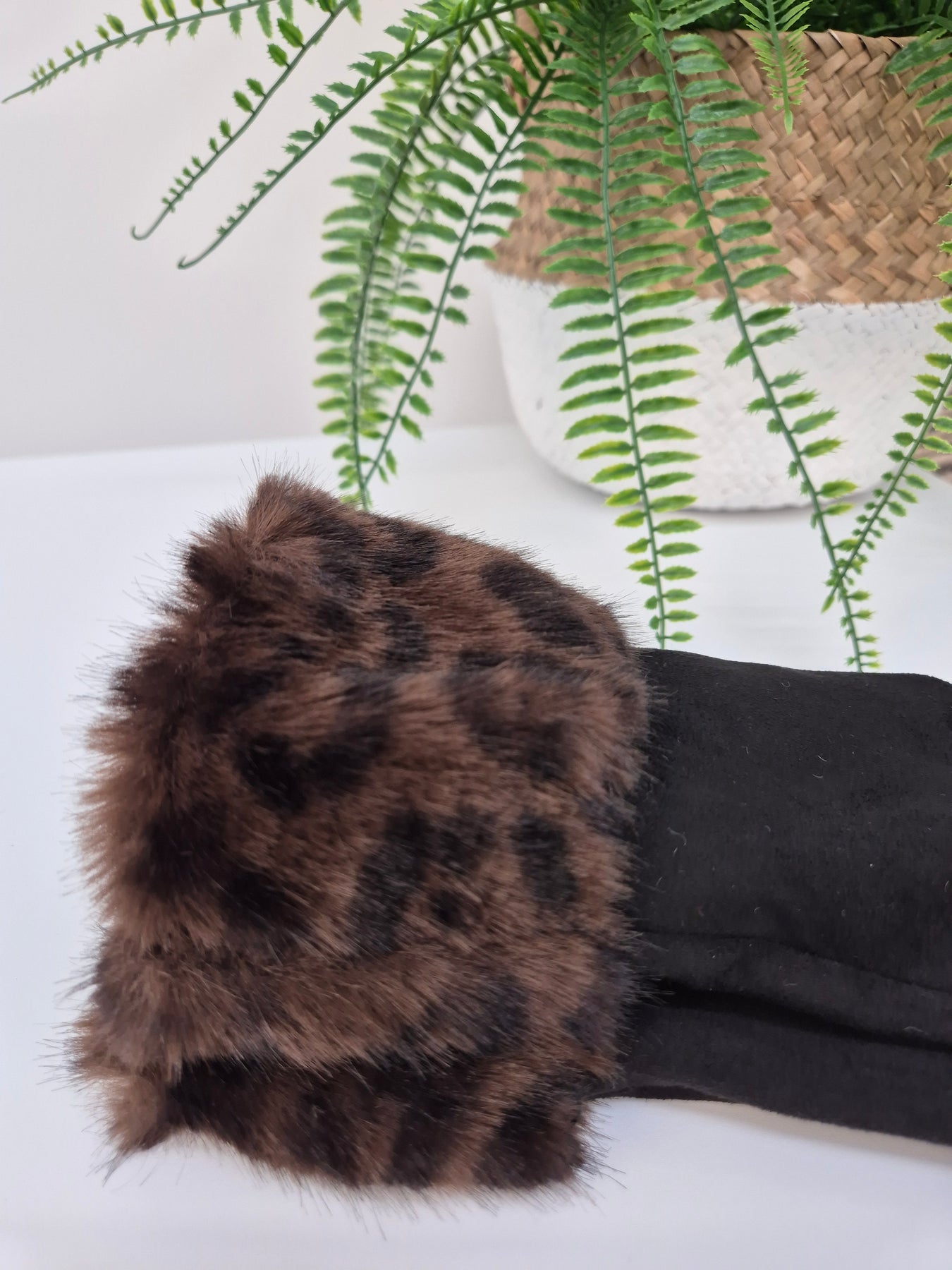 Oslo Gloves with Faux Fur - Black Leopard