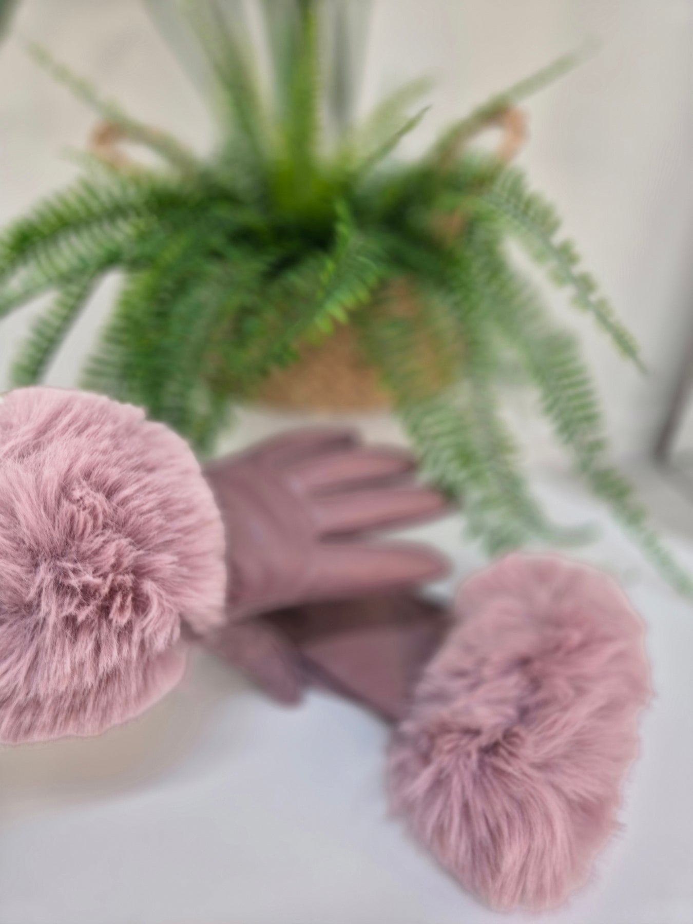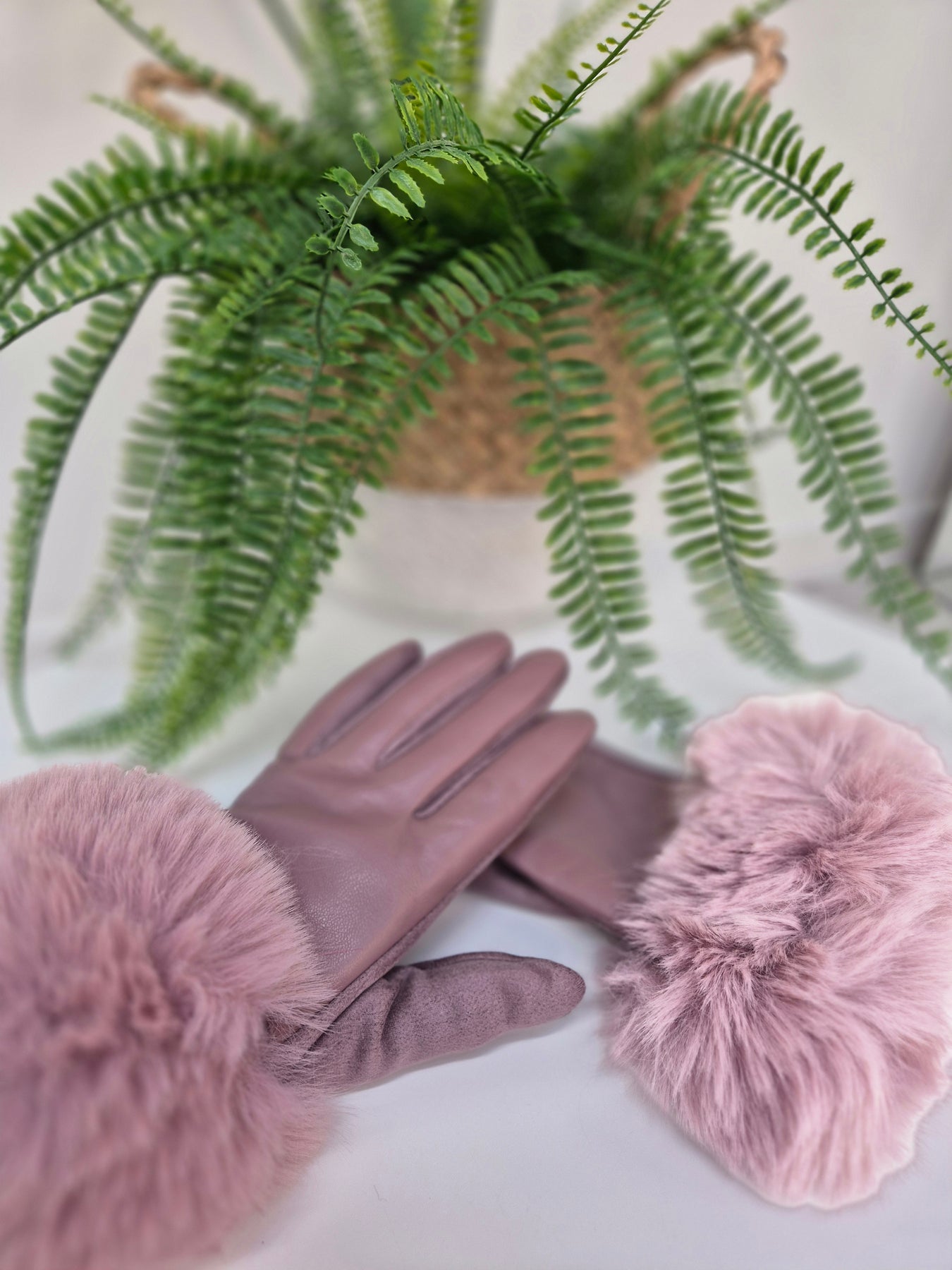 Oslo Gloves with Faux Leather & Faux Fur - Dusky Pink