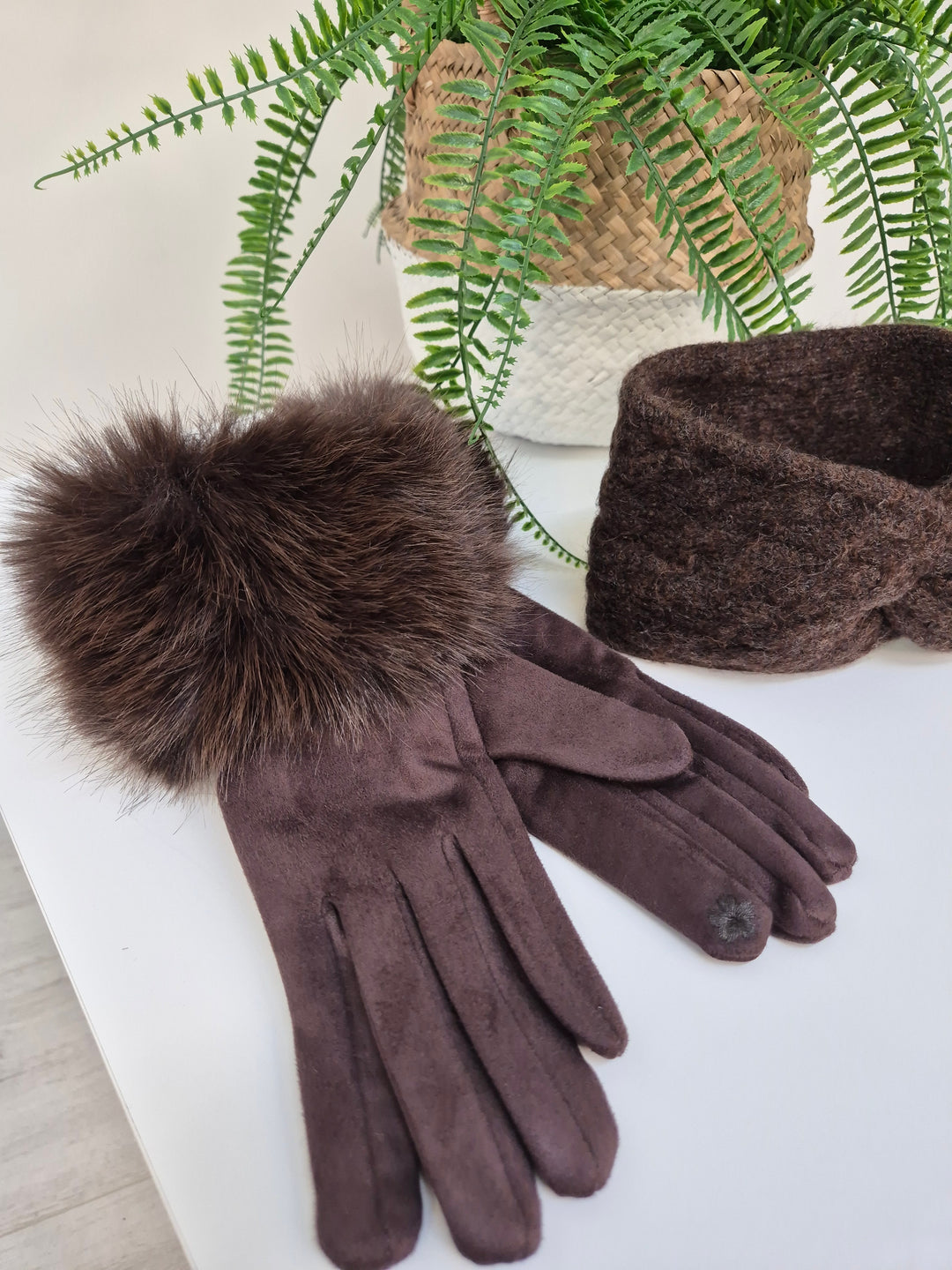 Oslo Faux Fur Fingerless Gloves - Mocha