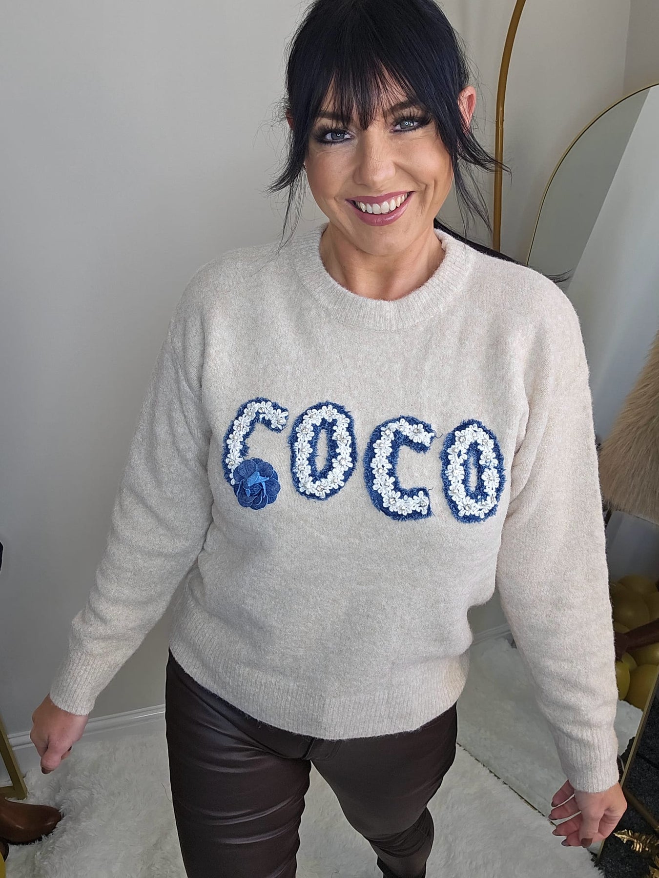 Coco Cosy Jumper in a lovely Soft Fine Knit with Applique