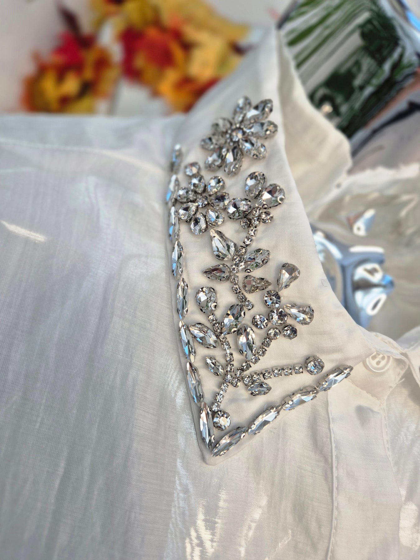Crystal Collar Blouse in White  One Size - fits from Size 8/10 up to Size 14 - White