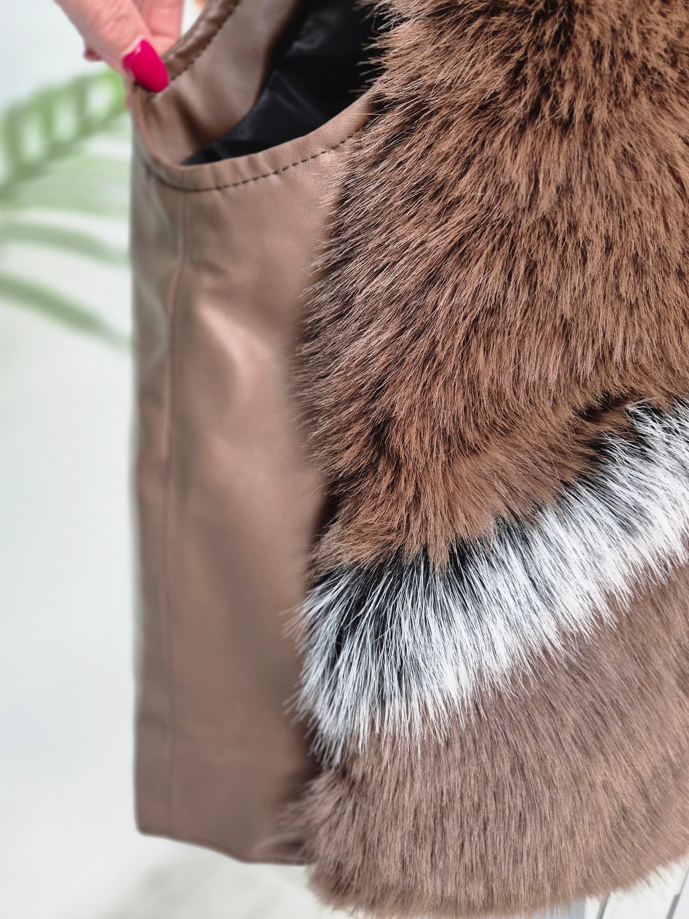 Stunning Faux Fur Gilet/Waistcoat with Soft & Supple Side Faux Leather Panels