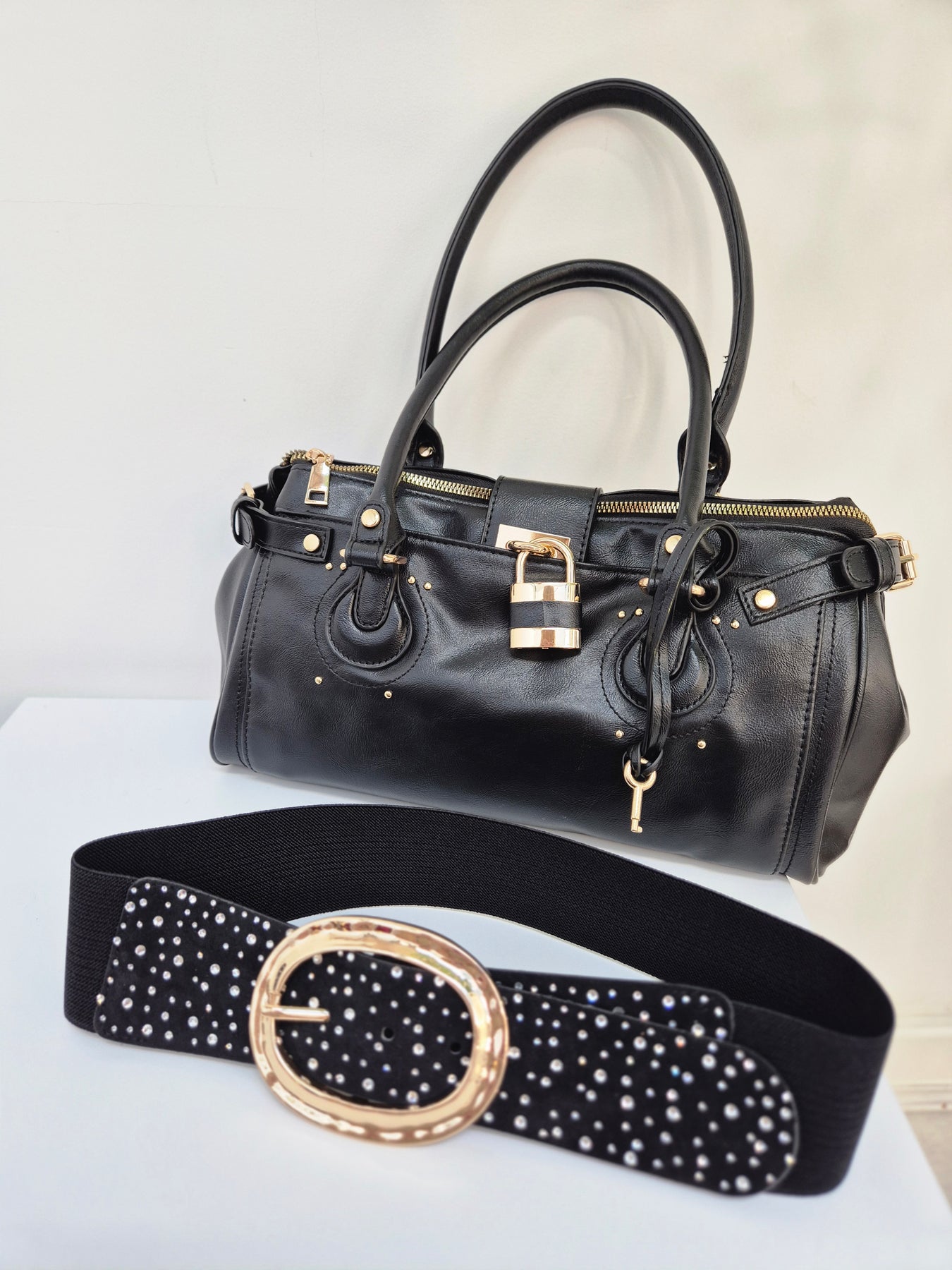 Stretchy Crystal Belt - Black - (One Size, fits from Size 8 to Size 16)