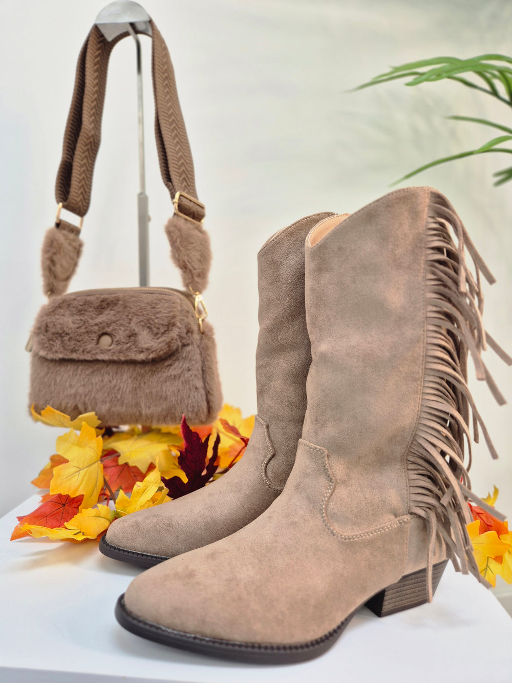 Oslo Large Faux Fur Bag with Stretchy Faux Leather Handle - Chocolate