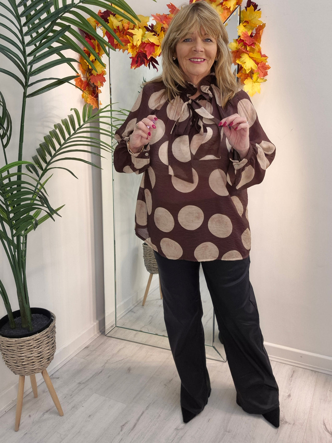 Dotty Oversized Blouse - (One Size/Curvy Size, fits from Size 14/16 to Size 20) - Chocolate