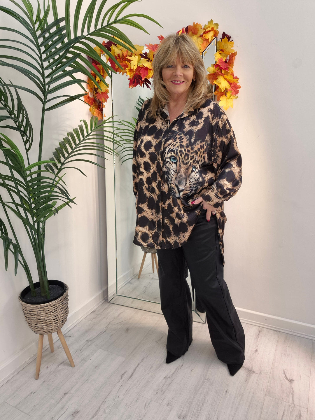 Zina Oversized Leopard Blouse - (One Size/Curvy Size, fits from Size 14/16 to Size 20)