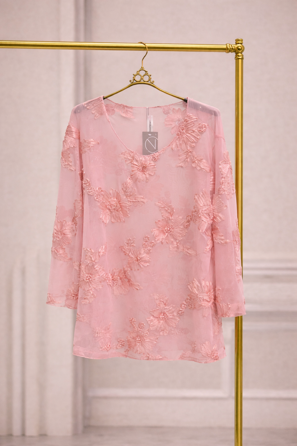 Super Soft Mesh Top, Semi Sheer with 3D Embossed Ribbon detailing