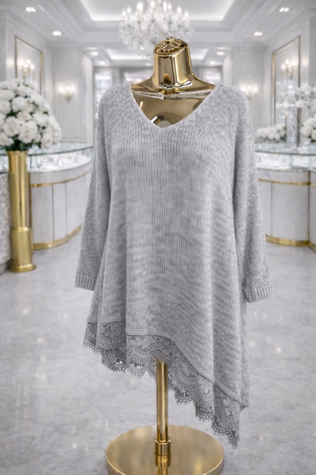 Lani Lace Asymmetric Jumper - Silver Grey (Curvy fitting from Size 14/16 up to Size 20)