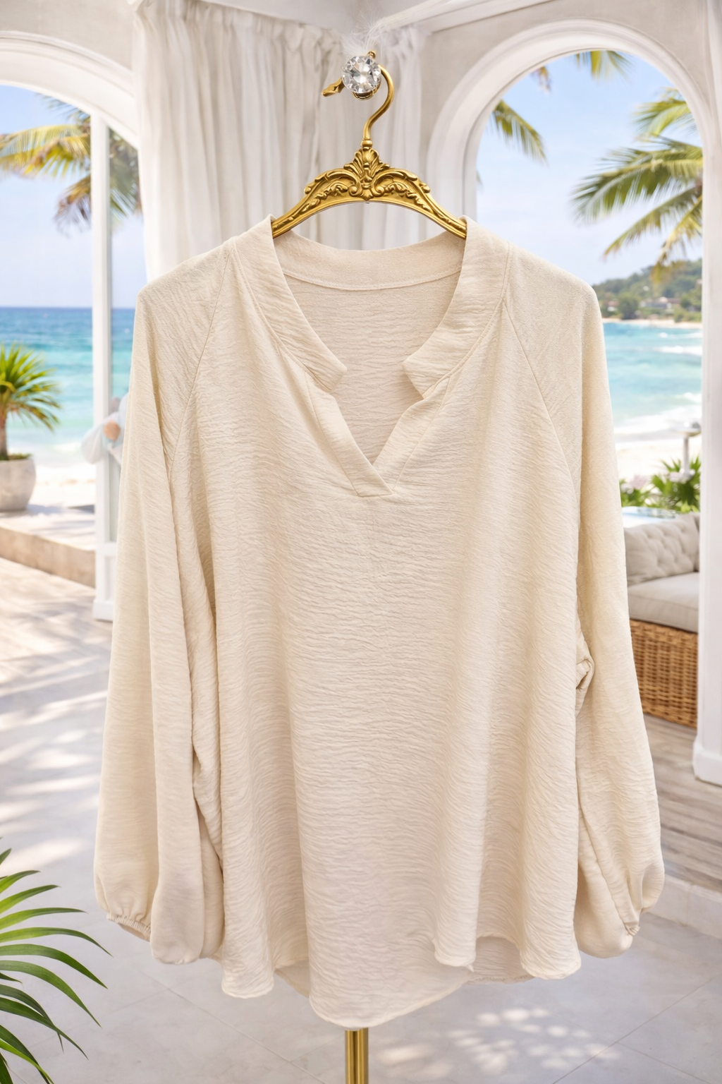 Mandy Mandarin Collar Blouse - Latte (One Size/Curvy - fitting from Size 16 up to Size 20)