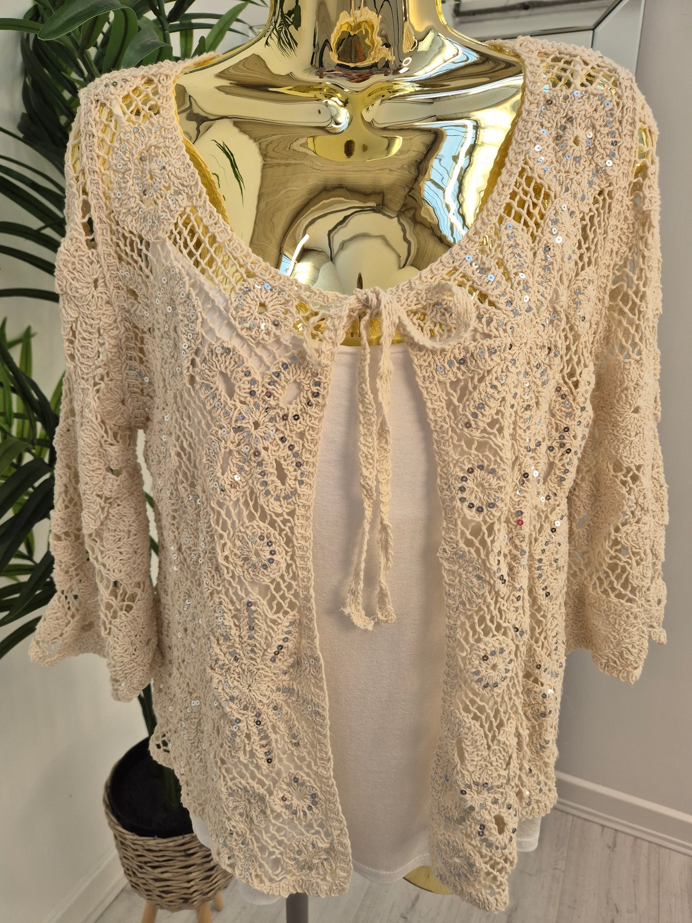 Es Cana Sparkly Shrug (One Size - fits from Size 10 up to Size 16) - Natural