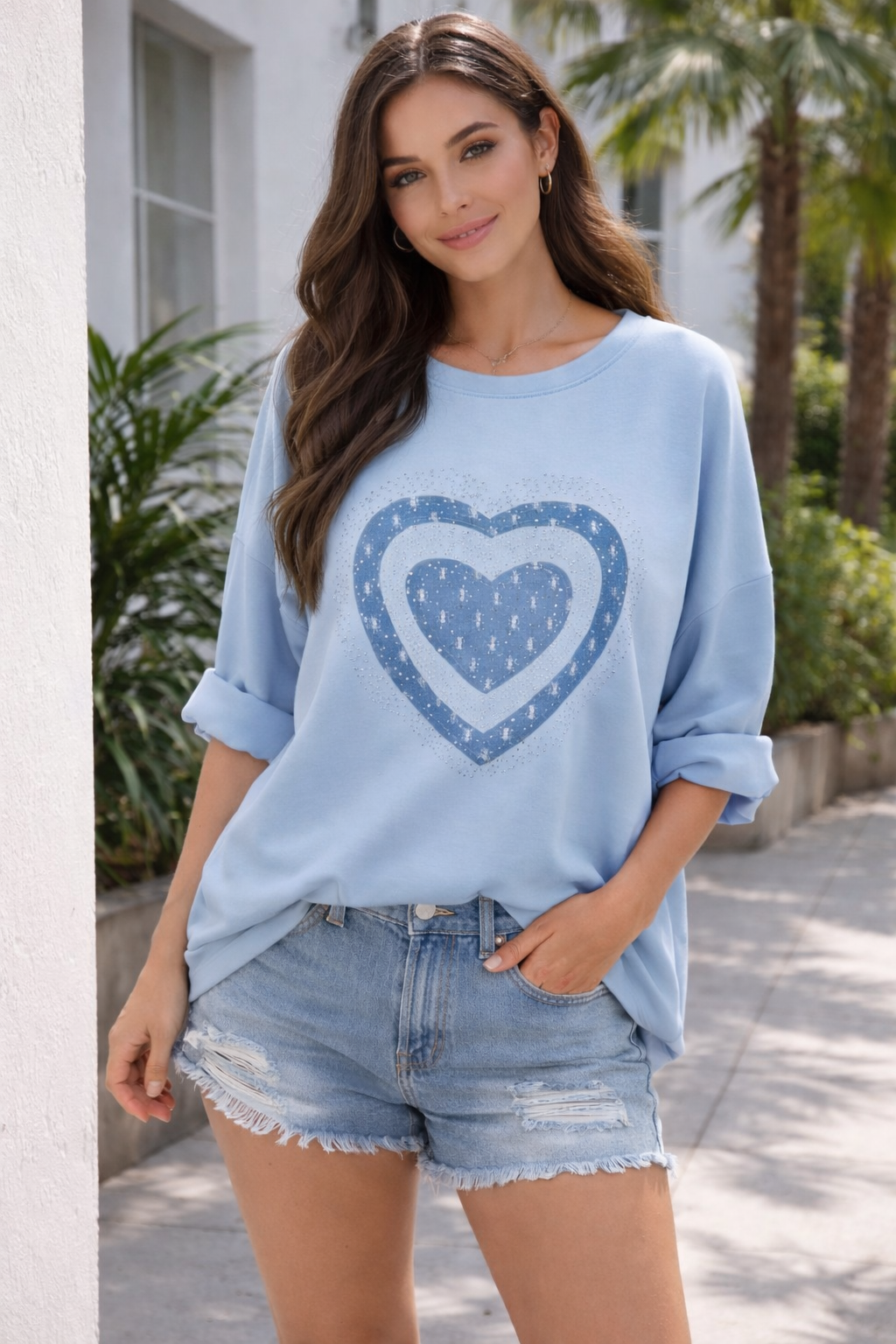 Hannah Hearts Slouchy Top - Blue/Blue (Oversized fitting from Size 14 up to Size 18/20)