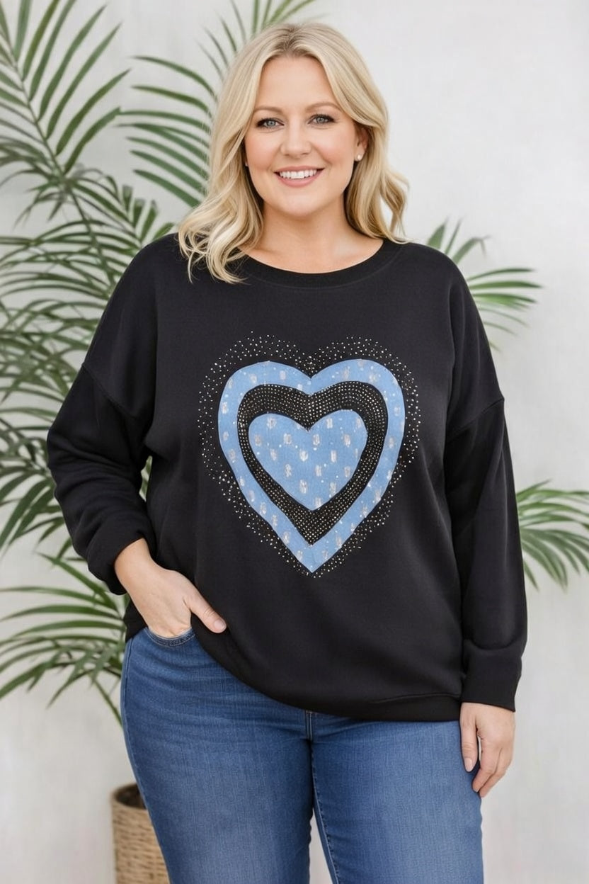 Hannah Hearts Slouchy Top - Black (Oversized fitting from Size 14 up to Size 18/20)