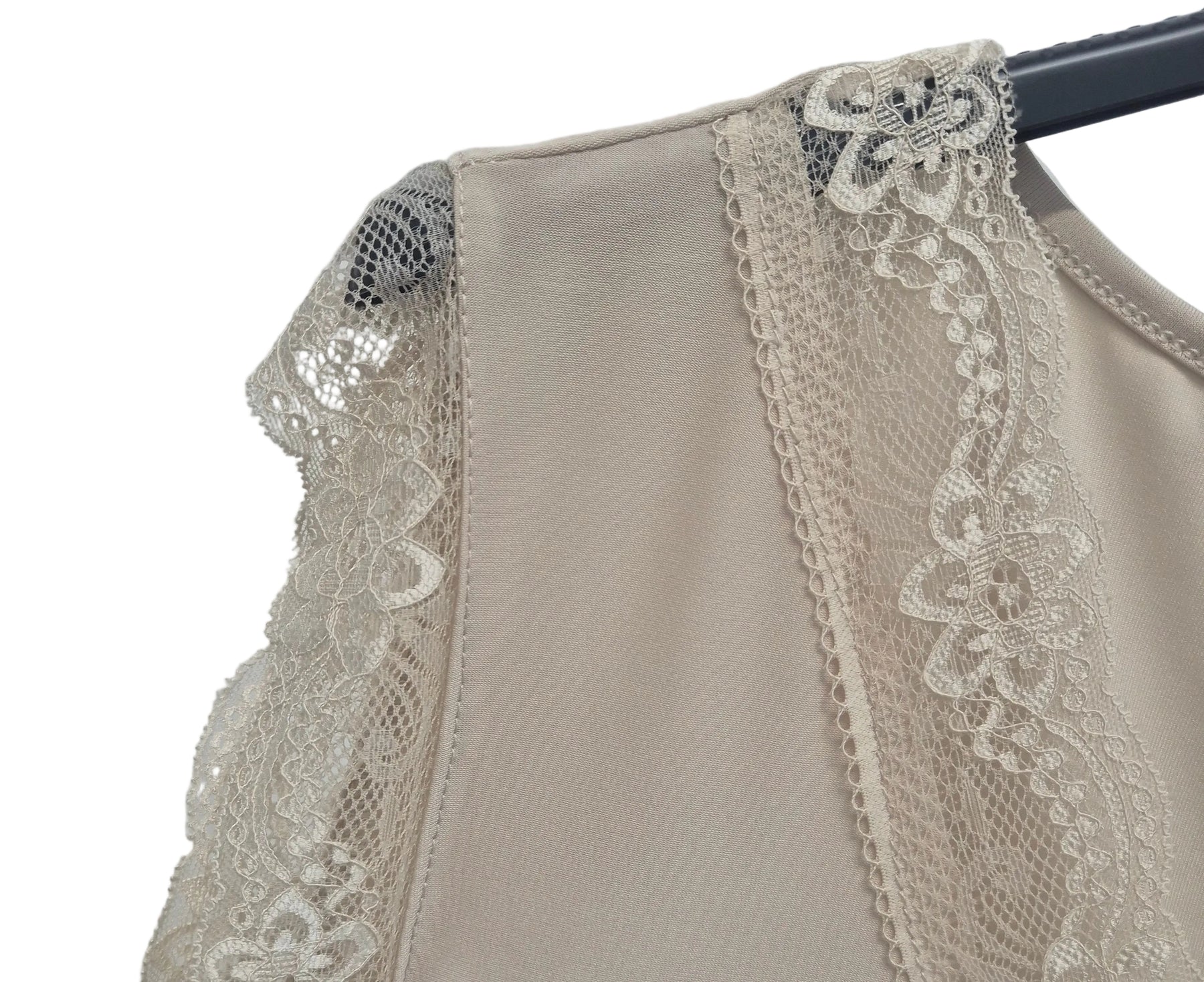 Stunning Vest Top with Lace V Neckline and Lace Trim Sleeve!
