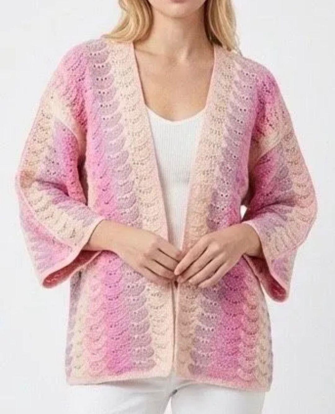 Wave Crochet Cardigan - Pink/Lilac (One Size - fits up to Size 16)