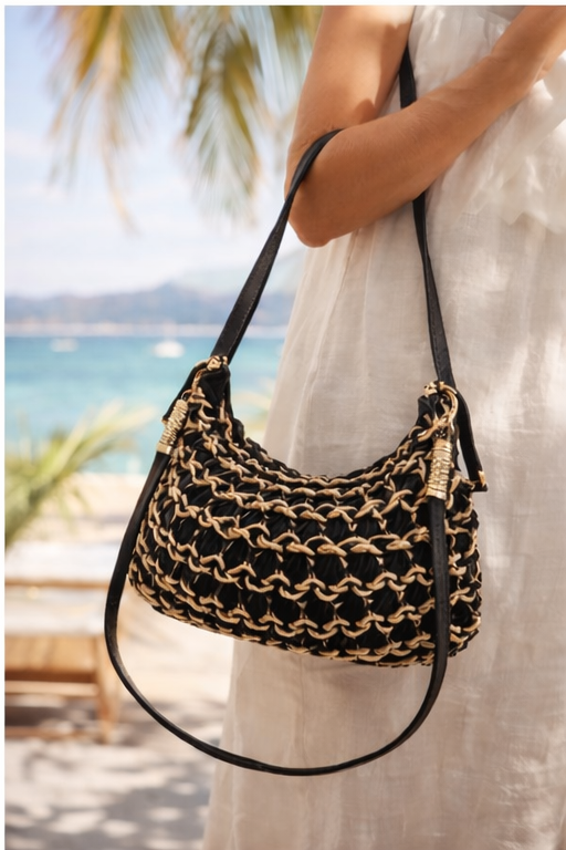 Marbella Gold Metallic Rope Bag - Black/Gold
