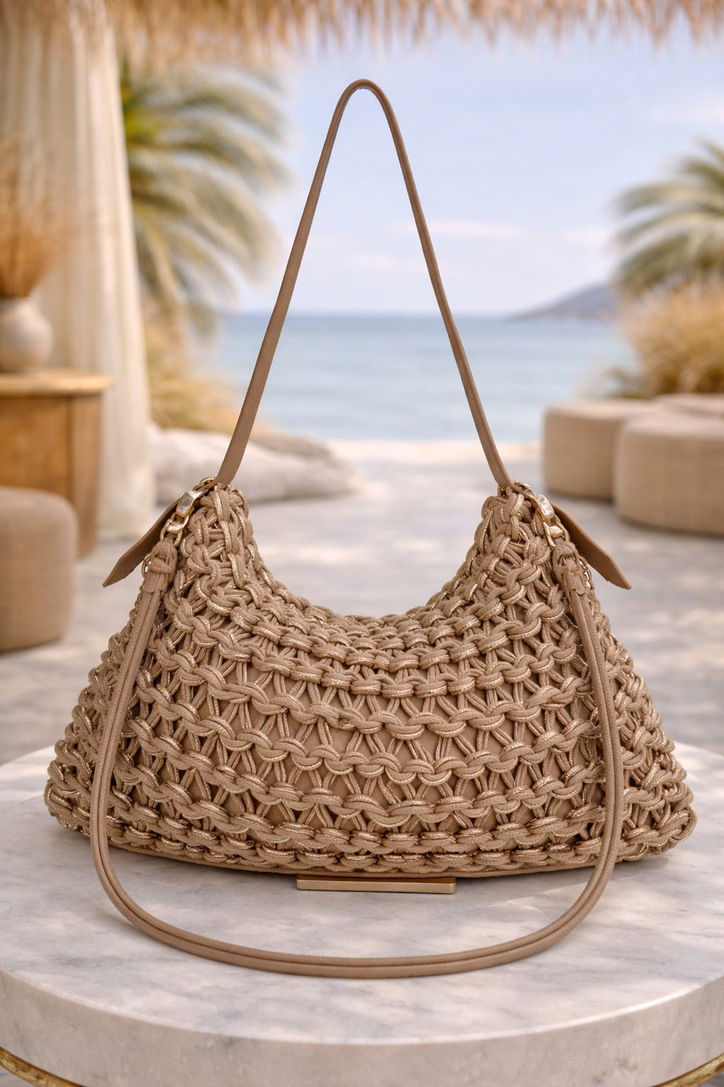 Marbella Gold Metallic Rope Bag - Chocolate/Gold