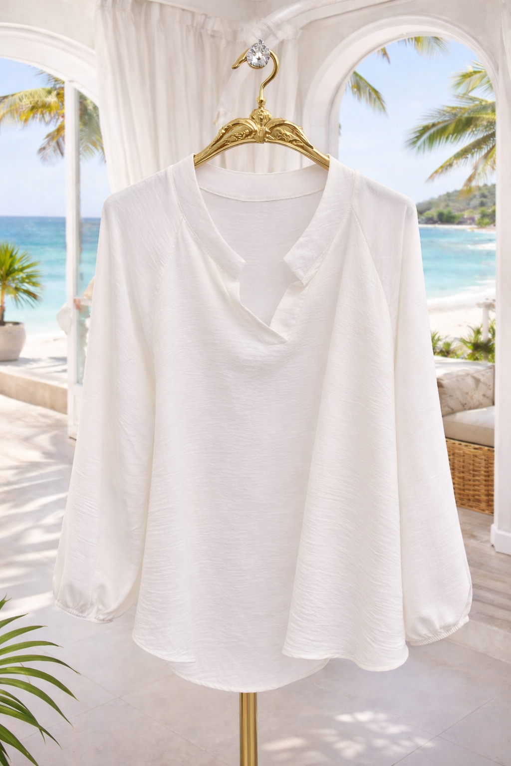 Mandy Mandarin Collar Blouse - White (One Size/Curvy - fitting from Size 16 up to Size 20)