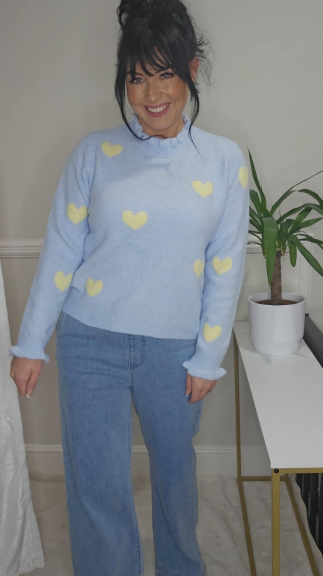 Helen Hearts Ruffled Jumper (One Size from Size 8 up to Size 16) - Blue/Lemon