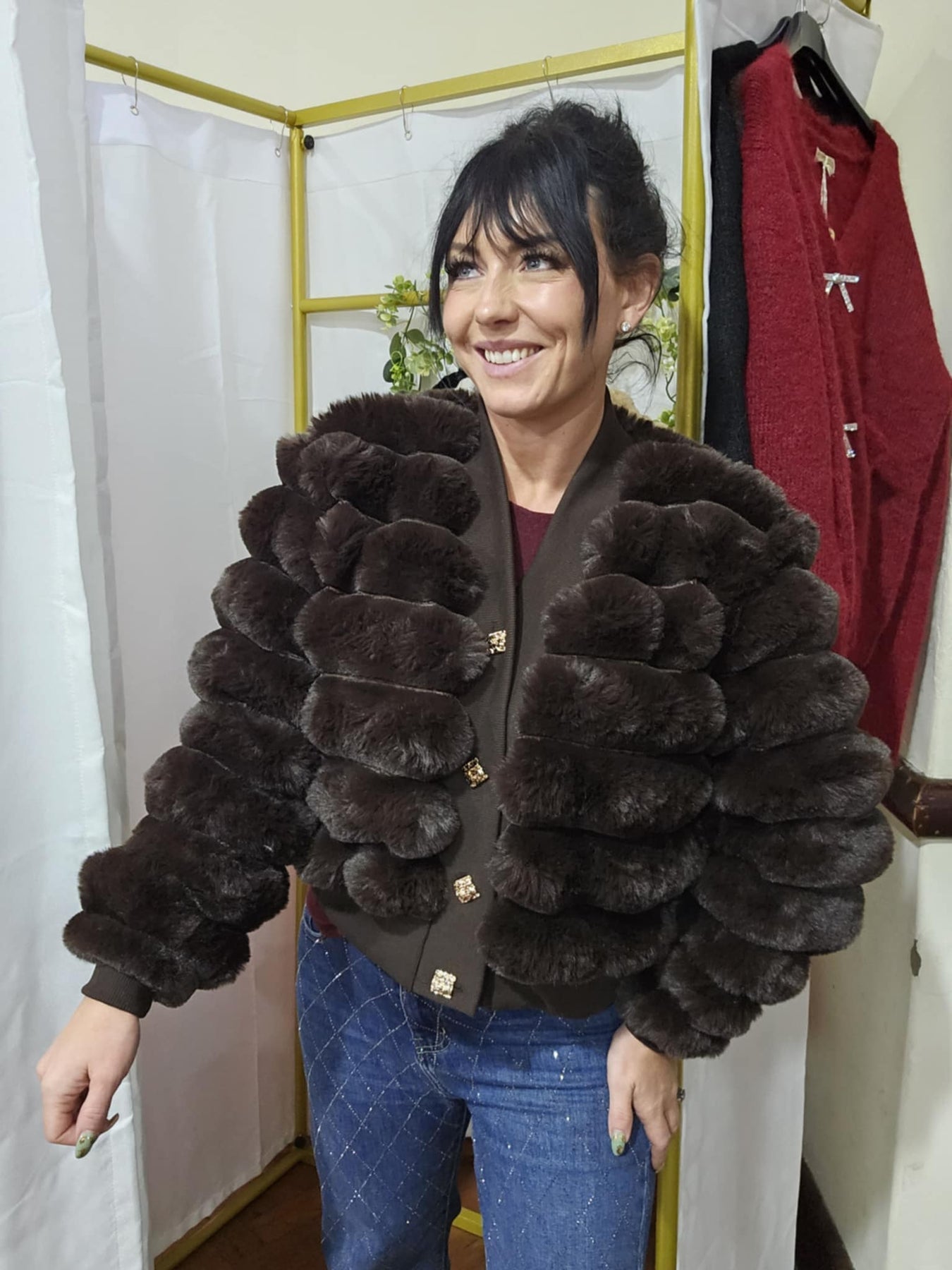 Oslo Faux Fur Cardigan (choose your Size) - Chocolate