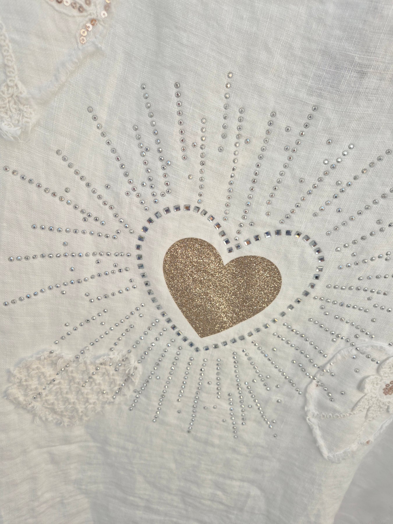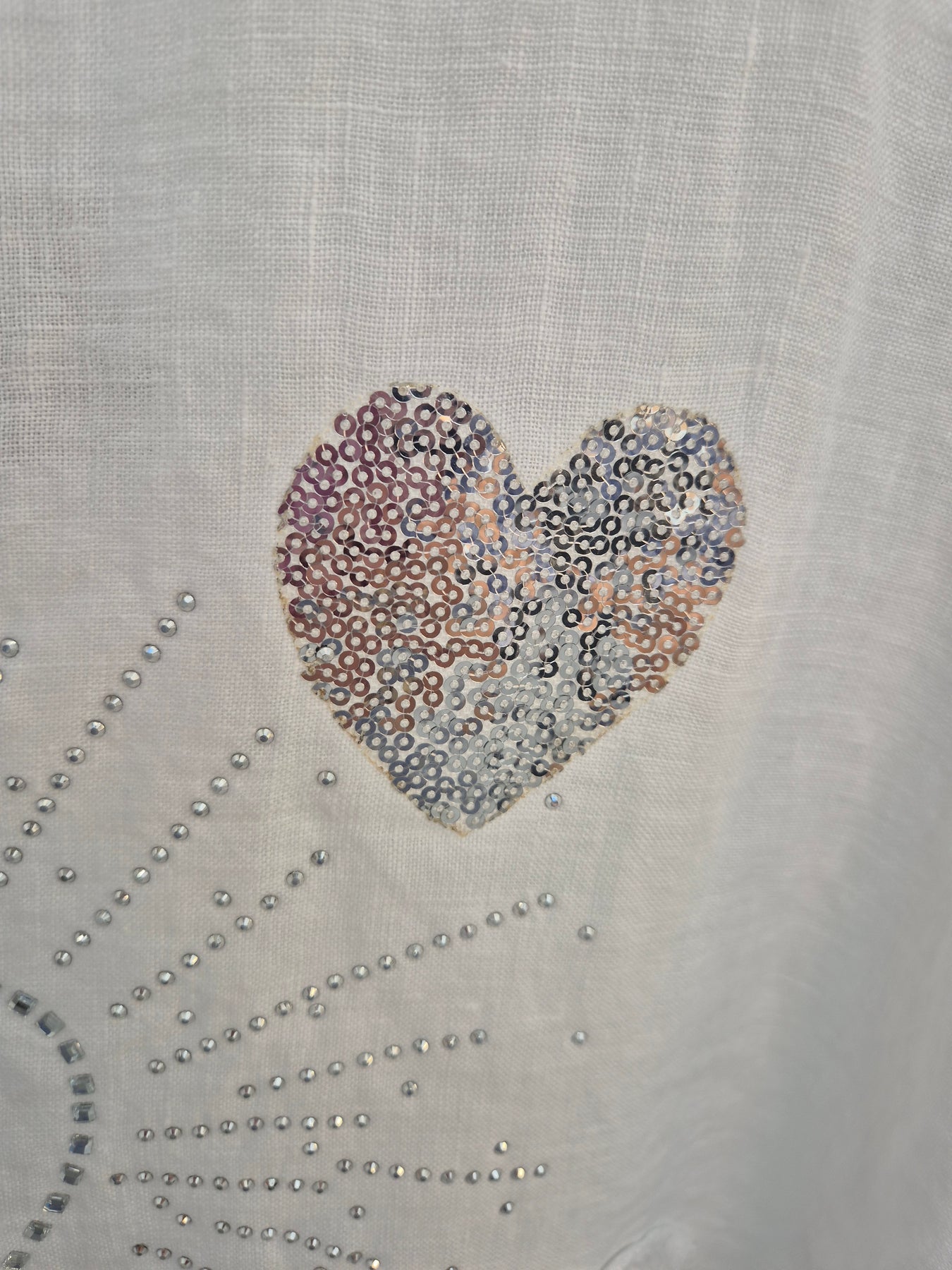 Amalfi Linen Hearts & Sequins Top - White (Oversized, fits from Size 14 to Size 18)