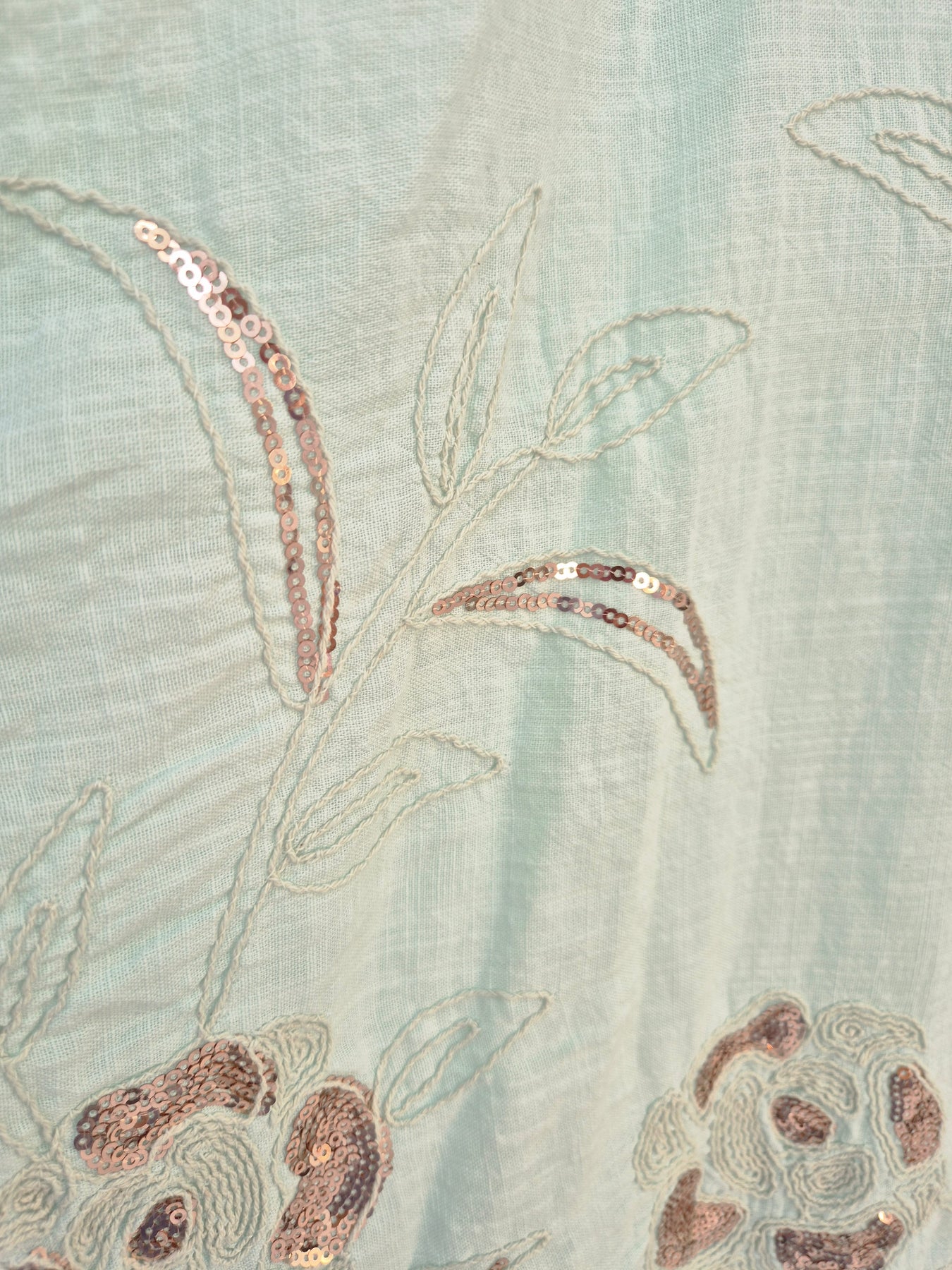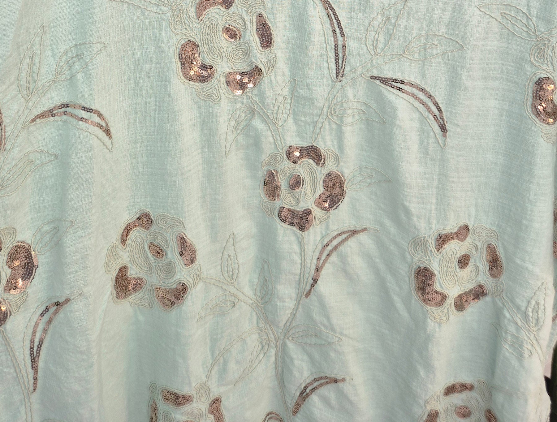 Such a Glam Top in Mint with Rose Gold Sequins & Onate Embroidery