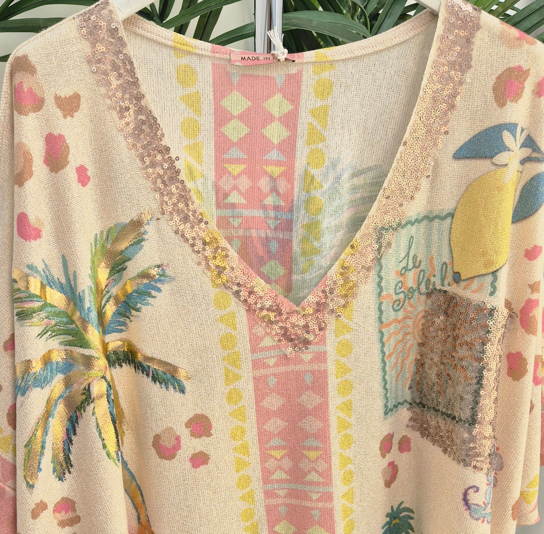 Carla is back, full of Shimmer with a touch of Gold Foil and Sequins on the V Neckline & Pocket