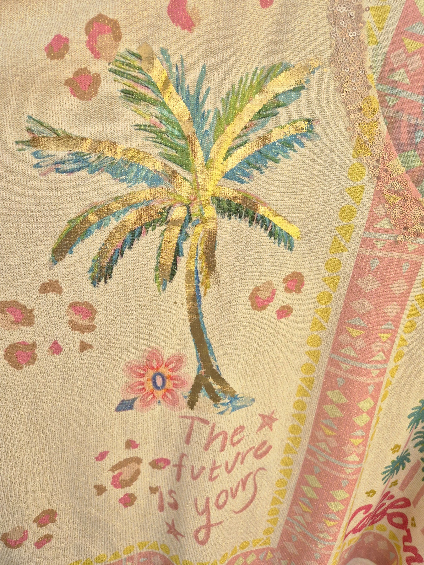 Carla Shimmer Oversized Top - THE FUTURE IS YOURS with Gold Foil & Sequins (One Size/Curvy fitting from Size 14/16 up to Size 20/22)