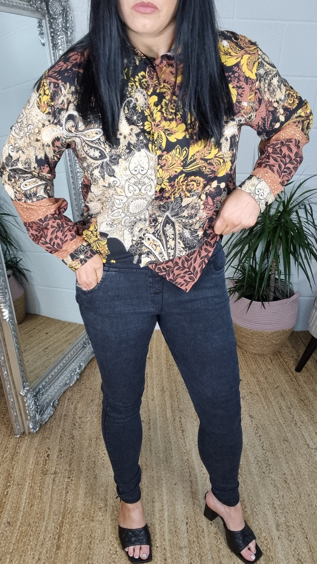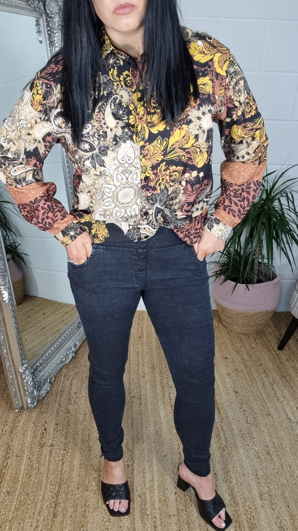 High Waisted Button Denim Jeggings - Black (Size 14)