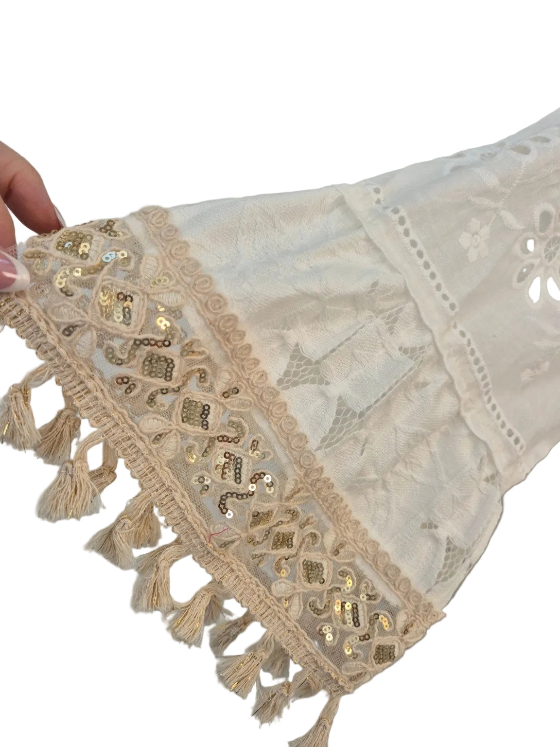 - Gold Sequins & Embroidery detailing to the Sleeves & Tassels