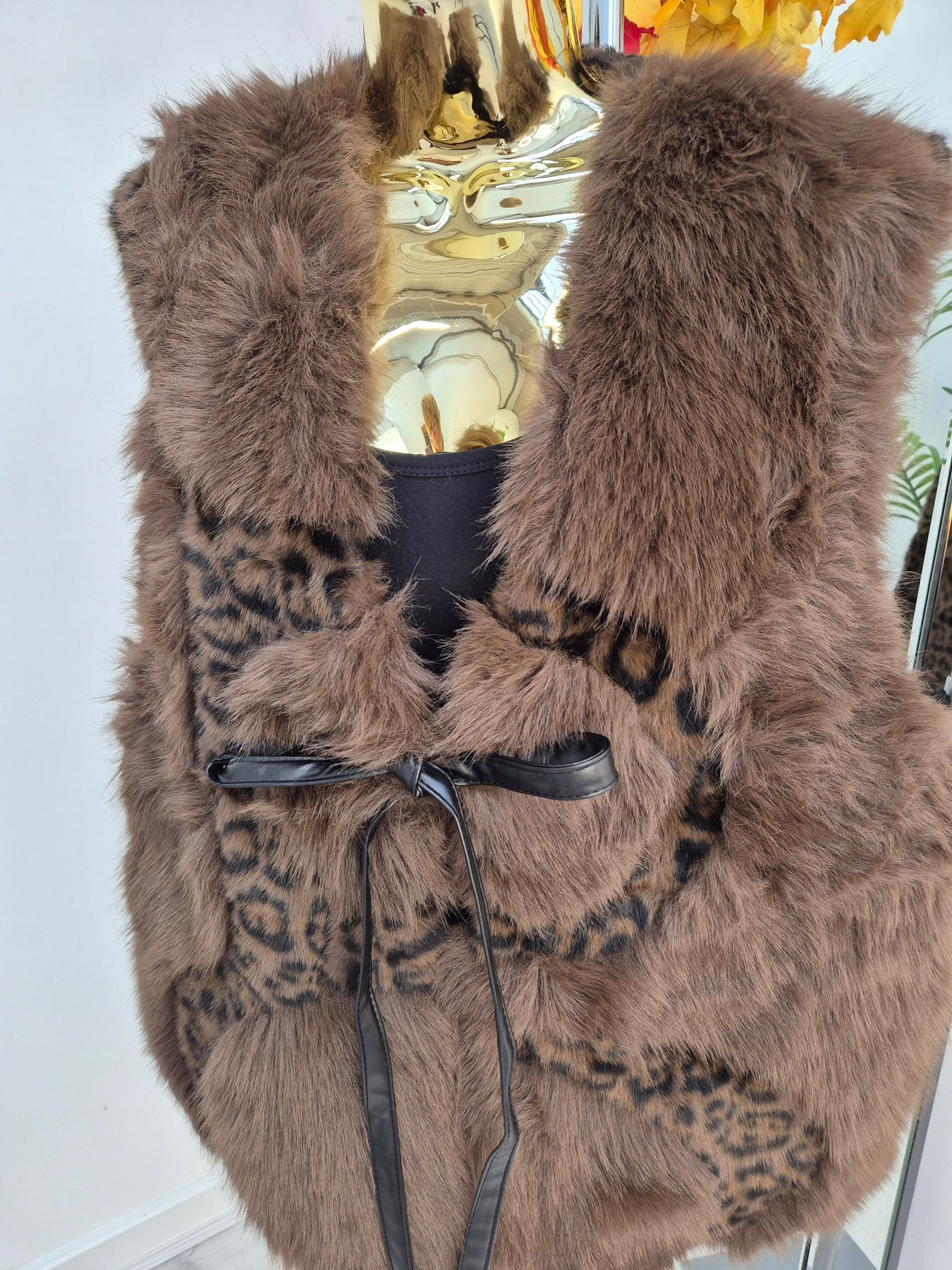 Oslo Faux Fur Gilet - Chocolate Leopard (One Size/Curvy - fits from Size 12/14 up to Size 18)
