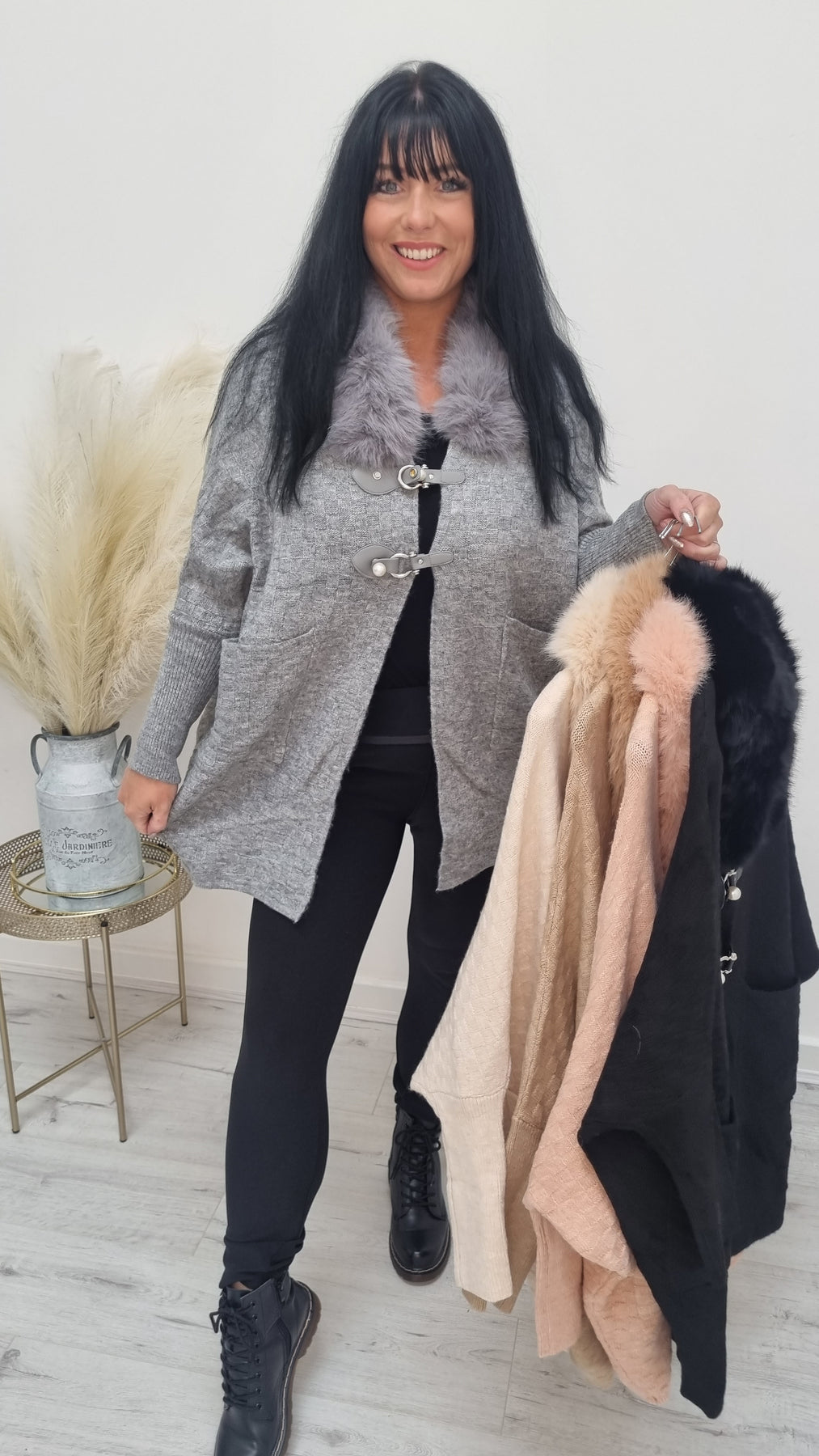 Stunning Oversized Cardigan/Jacket in the Softest Basket Weave Style Knit with Faux Fur Collar