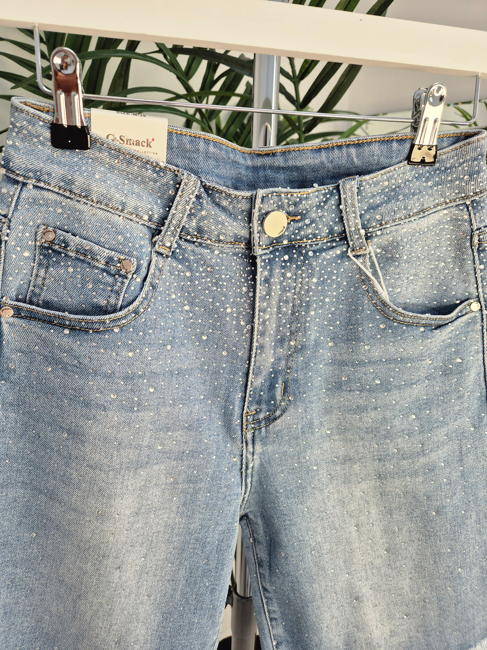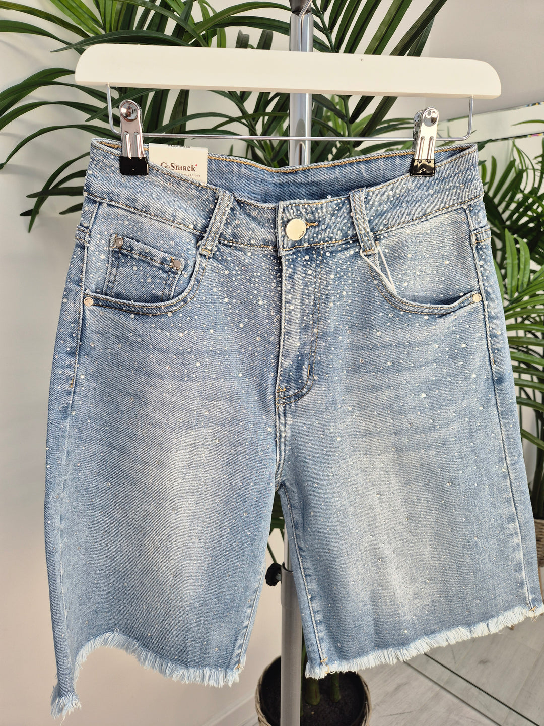Crystal Diamantes Denim Stretchy Frayed Shorts (G Smack) - Stonewashed Denim - (choose your Size)