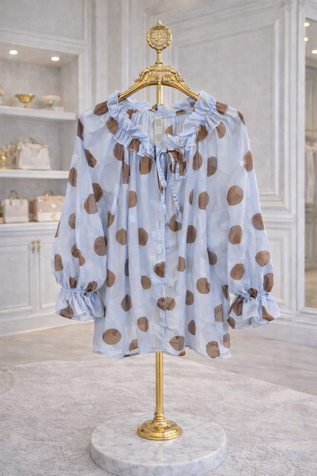 Dotty Chiffon Blouse (One Size, fits from Size 12 up to Size 18) - Blue/Chocolate