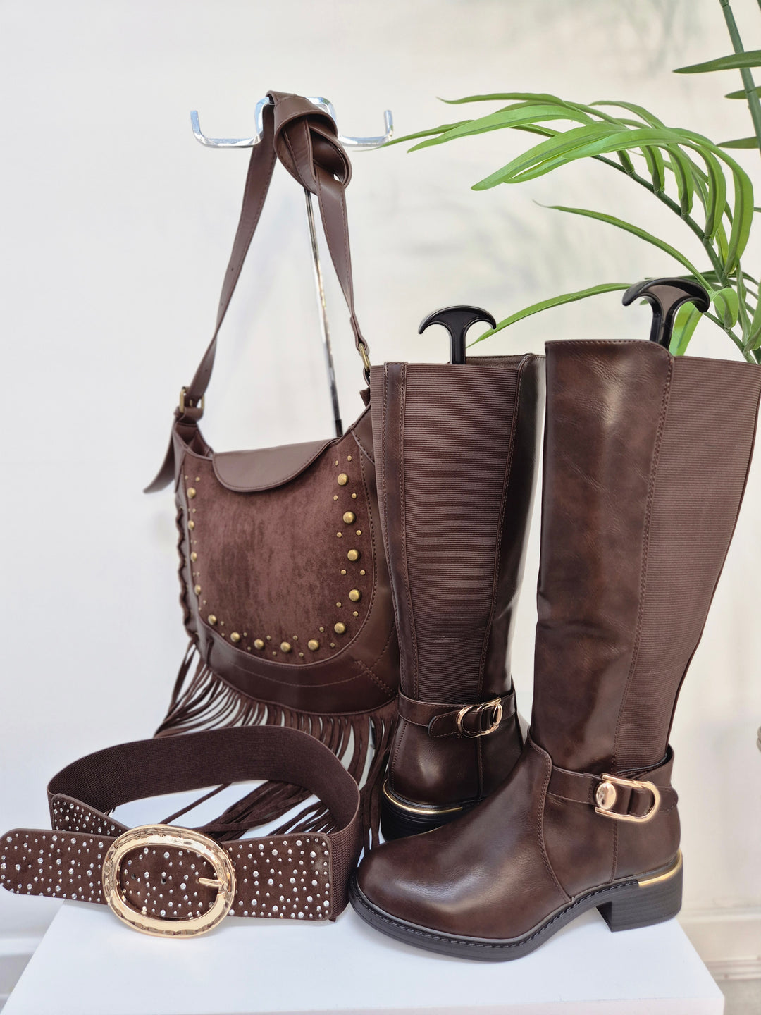 Stretchy Crystal Belt - Chocolate - (One Size, fits from Size 8 to Size 16)