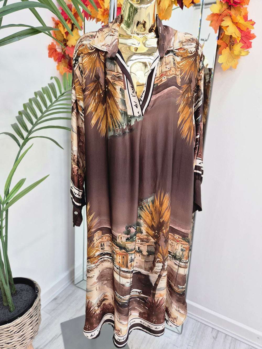 Amalfi Village Silk Dress - Chocolate - (One Size - fitting from Size 14 to Size 20)