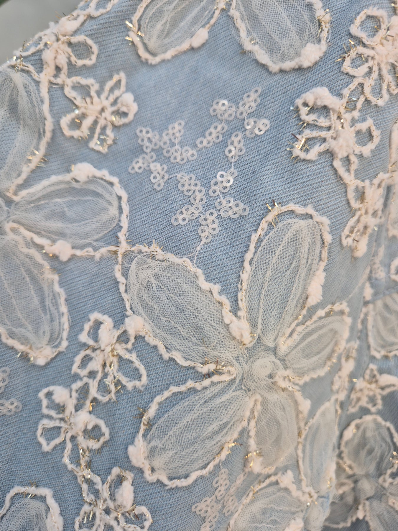 White Mesh Floral Appliques with Gold Metallic Thread for extra Glamour!