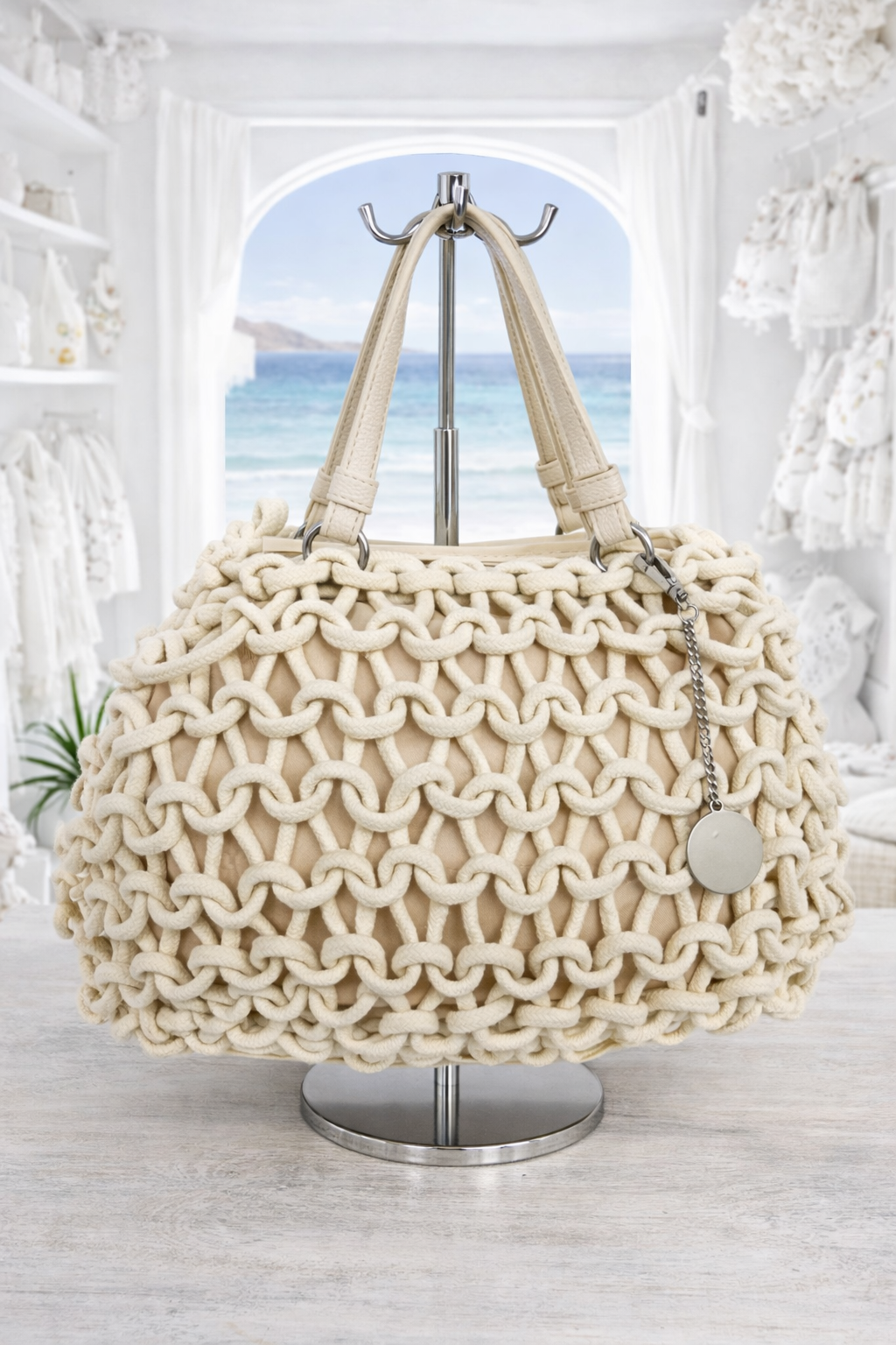 Island Crochet Bag with Dual Handles - Beige