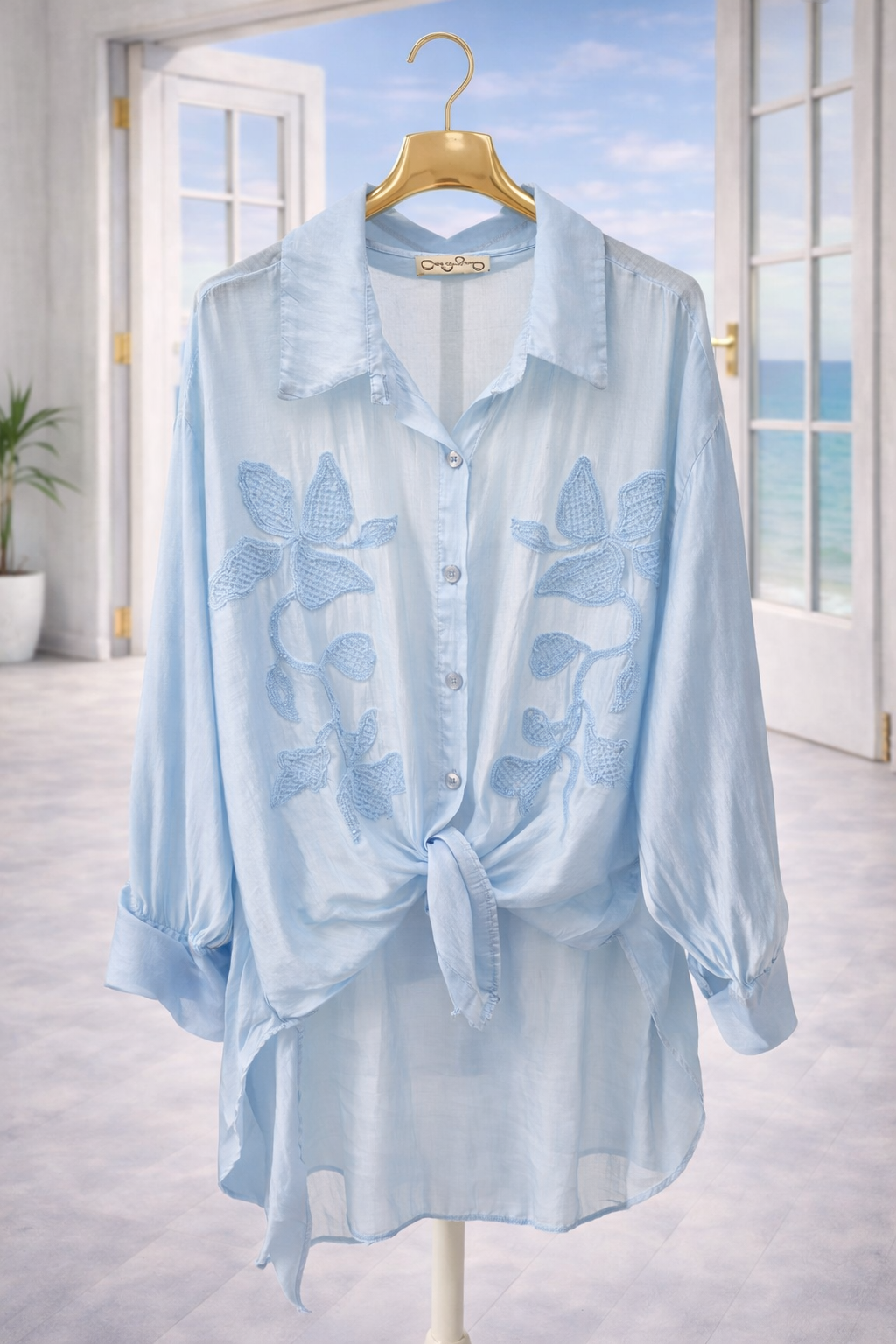 Eva Embroidered Oversized Blouse - Blue (One Size/Curvy, fitting from Size 14/16 up to Size 18/20
