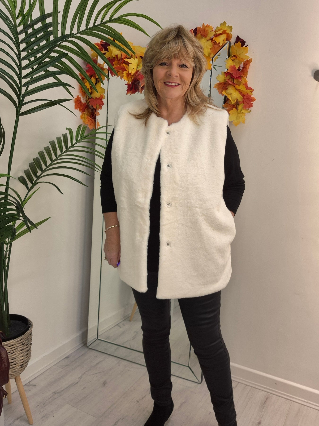 Oslo Faux Fur Gilet - Cream (Curvy fits from 14 up to Size 20)