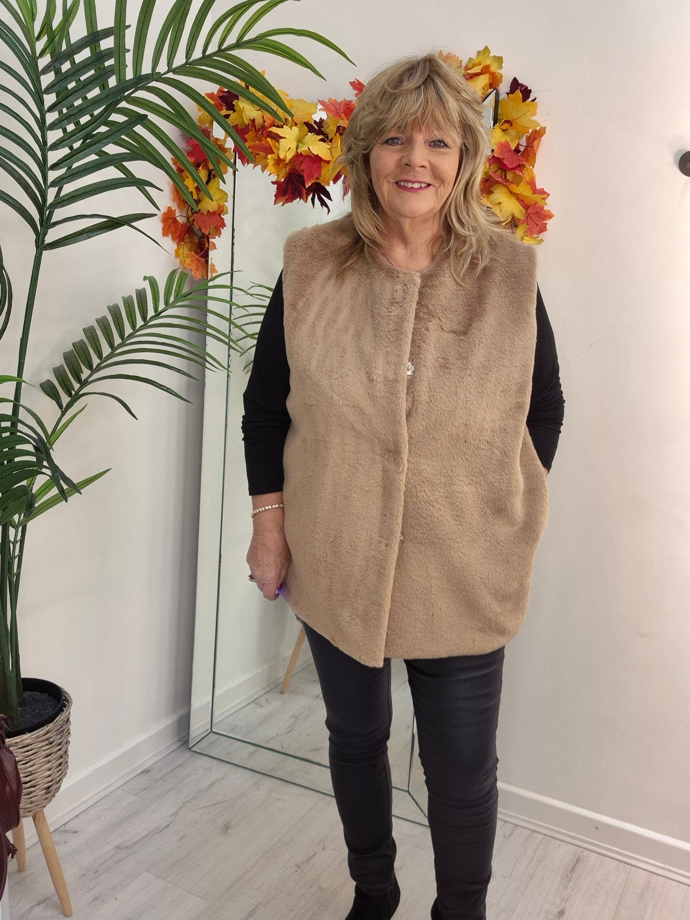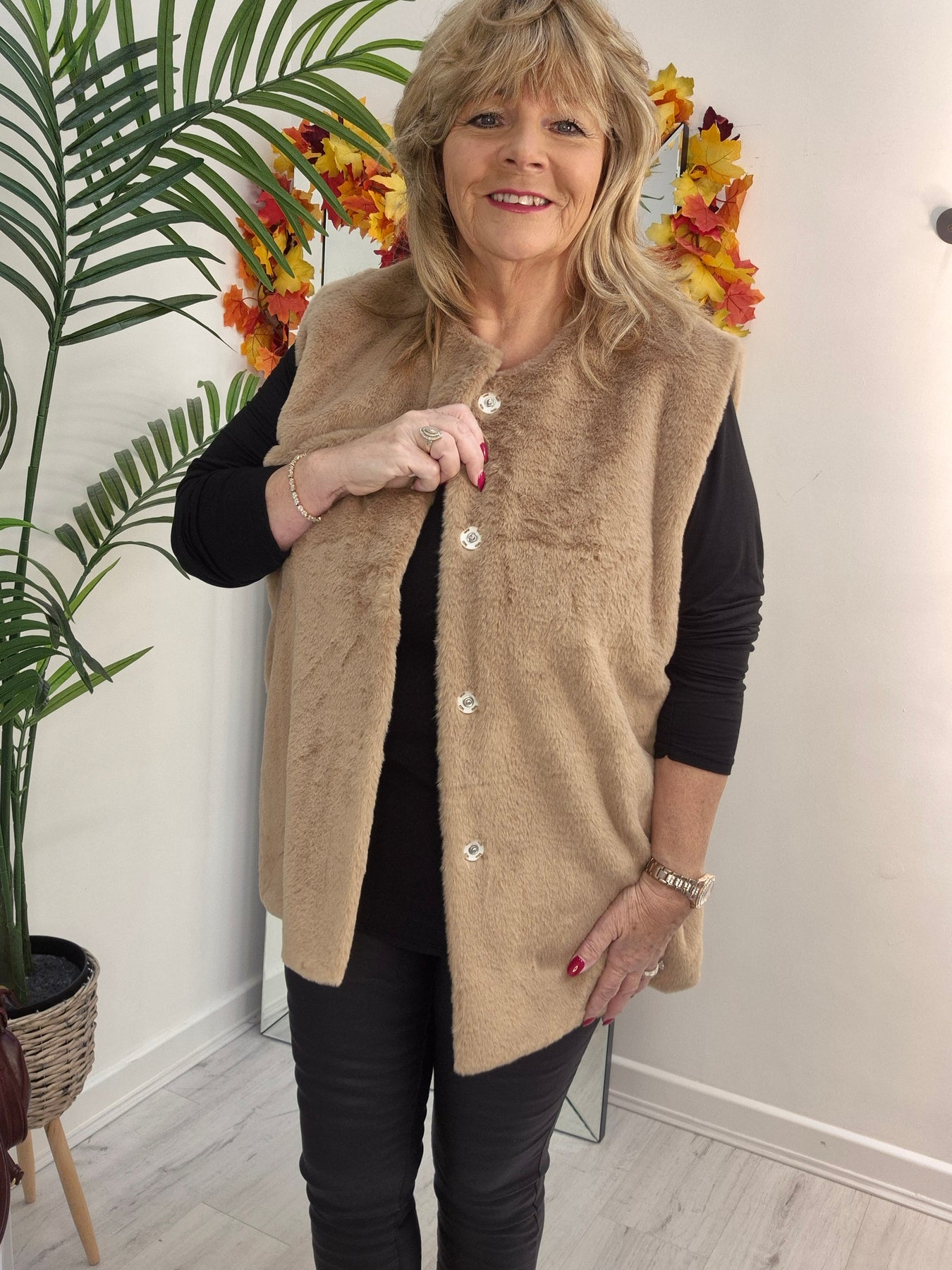 Oslo Faux Fur Gilet - Mochaccino (Curvy fits from 14 up to Size 20)