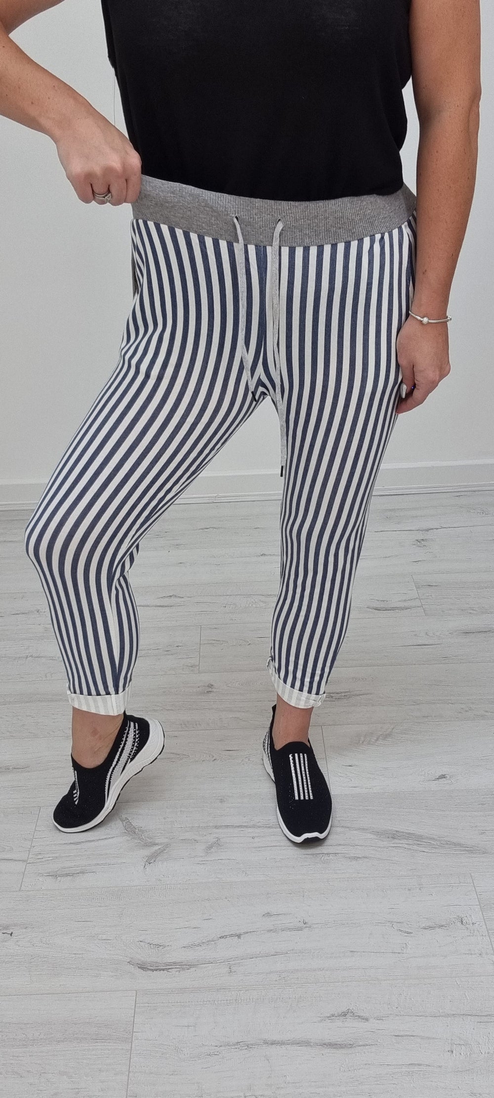 Stunning Striped Joggers with Stretchy Ribbed Waistband and Drawstring